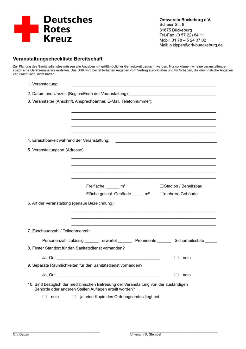 Da der Sanitätsdienst von ehrenamtlichen Einsatzkräften durchgeführt wird, benötigen wir eine gewisse Vorlaufzeit für unsere Planungen. Fordern Sie den Sanitätsdienst deshalb am besten so früh wie möglich an - etwa vier bis sechs Wochen vor Veranstaltungsbeginn. Rufen Sie uns an, schreiben Sie eine E-Mail oder nutzen Sie unser Formular (siehe auch Grafik links), um den Sanitätsdienst anzufordern.