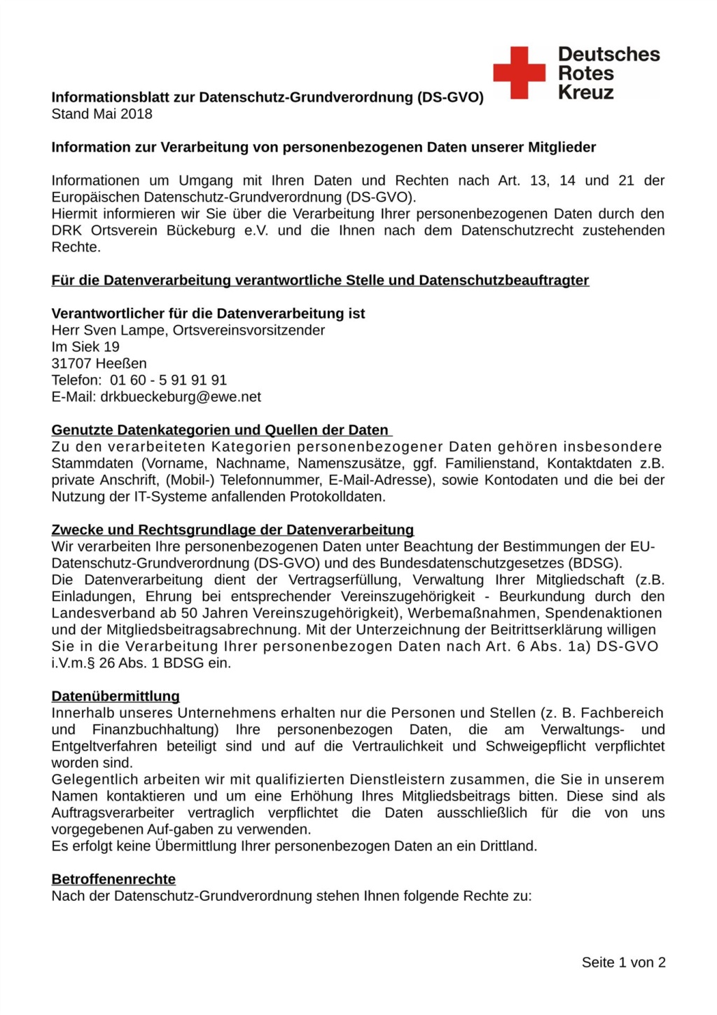 Zum Antrag gehört diese Erklärung über die DSGVO